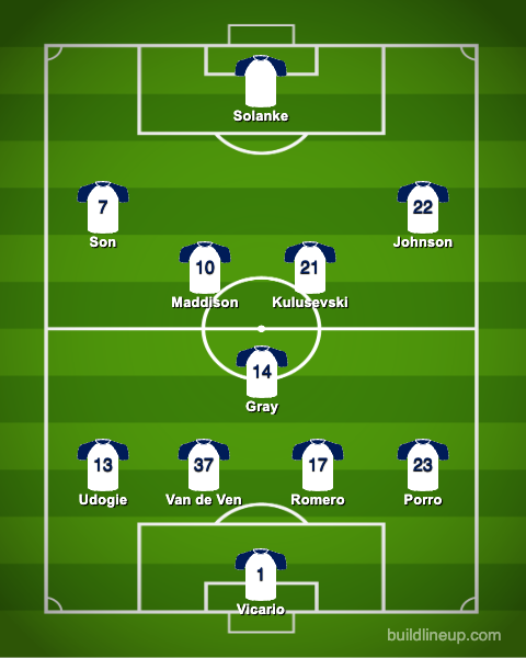 Besides the back four being a no-brainer, it's also pretty clear that Solanke has to start since Richarlison has barely trained. Ange has spoken about how he doesn't prefer to utilize Kulusevski at striker (even though he played well there during the pre-season) and realistically, Son is more effective on the wing.