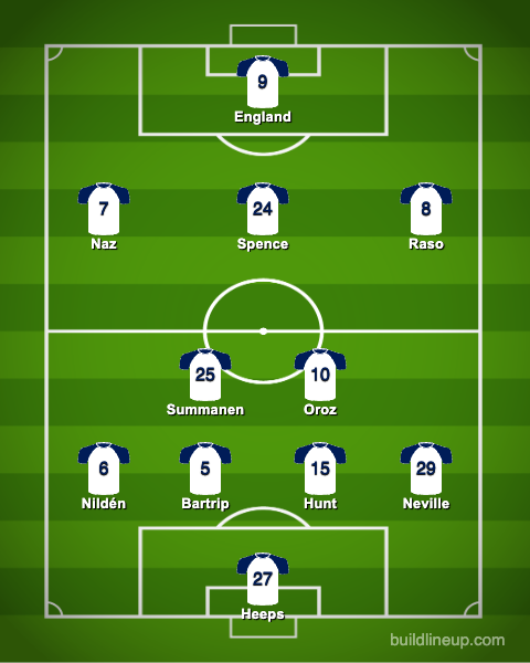 The future of the #1 keeper spot is still up for debate when Spencer returns in the new year, but otherwise, this XI is solidly in contention for Spurs' ideal lineup. And if we're keeping an eye toward the future and prioritizing development, you could argue that Heeps' inclusion is welcome. I certainly don't think she's done anything to warrant being dropped after the break, but with Jennifer Falk heavily rumored to be joining during the transfer window, the club may decide to send her out on loan to continue her development.