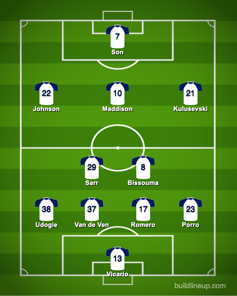 Pedro Porro was right back into the starting lineup after missing the previous two games. Despite Richarlison's hopes, he was not able to make the matchday squad and Son Heung-min kept the striker spot. It was a bit of a surprise for Brennan Johnson to start over Timo Werner, but he proved to be one of the standout players of the match.