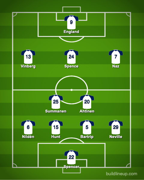 Martha Thomas dropped to the bench and Matilda Vinberg started instead, shifting Jess Naz over to the other wing as Beth England took up the striker role.