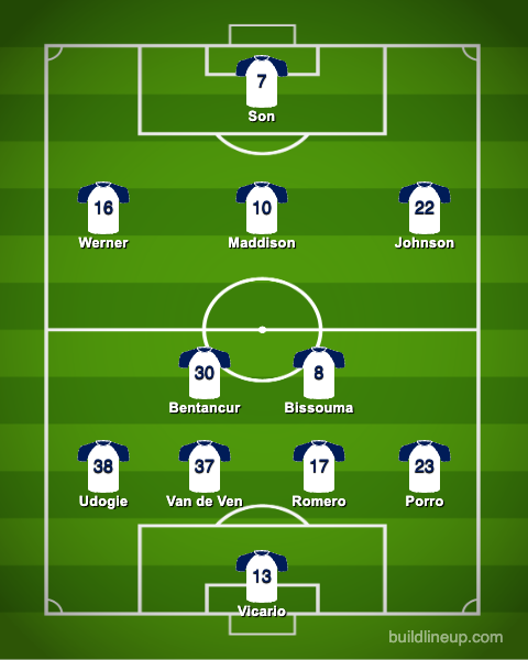 There was only one change from the lineup that beat Nottingham Forest, with Rodrigo Bentancur starting over Pape Sarr. Somehow, Yves Bissouma continues to start despite all evidence to suggest he needs a stint on the bench.