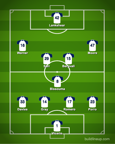 Destiny Udogie is available again after being precautionarily held out of the Europa League fixture, but Son Heung-min is expected to miss another game. Since he's already been withdrawn from the South Korea squad for the upcoming international break, it can't be a bad thing for him to get an extra weekend of rest. We'll want to have the skipper available for the derby against West Ham United on the other side of the break. Richarlison and Wilson Odobert are still out, but Radu Drăgușin is back in the squad after serving his Europa League red card suspension. With Udogie back, I would be happy to see the same lineup from the Manchester United game, with some early sub appearances from players like Lucas Bergvall, Mikey Moore, and Djed Spence to continue their development.
